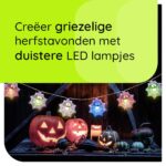 De Halloween lampjes geven een kleurrijk licht dat elke hoek van je huis tot leven brengt. De levendige kleuren zorgen ervoor dat je decoratie niet alleen griezelig, maar ook aantrekkelijk is voor het oog. Perfect om indruk te maken op je gasten tijdens de Halloweenperiode.