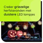 Met 10 warm witte LED-lampjes biedt dit lichtsnoer niet alleen een sfeervolle verlichting, maar is het ook energiezuinig. De lampjes hebben een lange levensduur, zodat je jaar na jaar van deze Halloween verlichting kunt genieten zonder je zorgen te maken over vervanging.