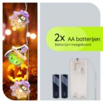 Dankzij de meegeleverde 2 AA-batterijen is het Halloween Lichtsnoer direct klaar voor gebruik. Je hebt geen stopcontact nodig, waardoor je het lichtsnoer flexibel kunt plaatsen waar je maar wilt. Ideaal voor binnengebruik en eenvoudig te combineren met andere Halloween decoratie.