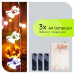 Het Halloween Lichtsnoer Spookjes werkt eenvoudig. Plaats simpelweg de 3 meegeleverde AA batterijen in het batterijvakje, schakel de lampjes in, en geniet van de kleurrijke Halloween verlichting die je ruimte transformeert.