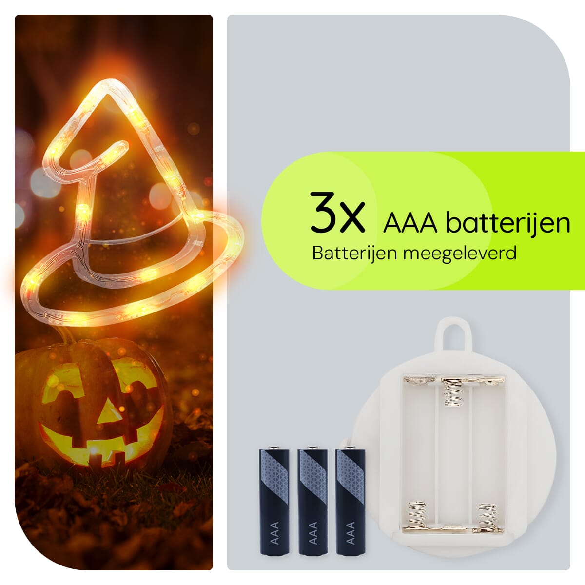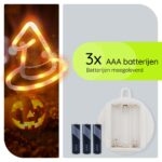 Je hoeft je geen zorgen te maken over extra aankopen, want deze Halloween feestverlichting wordt geleverd inclusief batterijen. Je kunt de heksenhoed direct uitpakken en ophangen zonder gedoe met snoeren of stroomvoorziening.