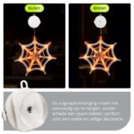 Het spinnenweb werkt op batterijen en is voorzien van LED-verlichting die een zacht, spookachtig schijnsel verspreidt. Bevestig de zuignap aan je raam, schakel de verlichting in, en je bent klaar om een enge sfeer te creëren.
