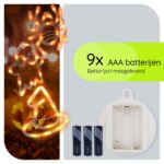 Deze feestelijke verlichting werkt op batterijen, zodat je geen elektriciteitskabels hoeft te gebruiken. Ideaal voor binnengebruik, en je kunt ze overal in huis plaatsen zonder je zorgen te maken over stopcontacten.