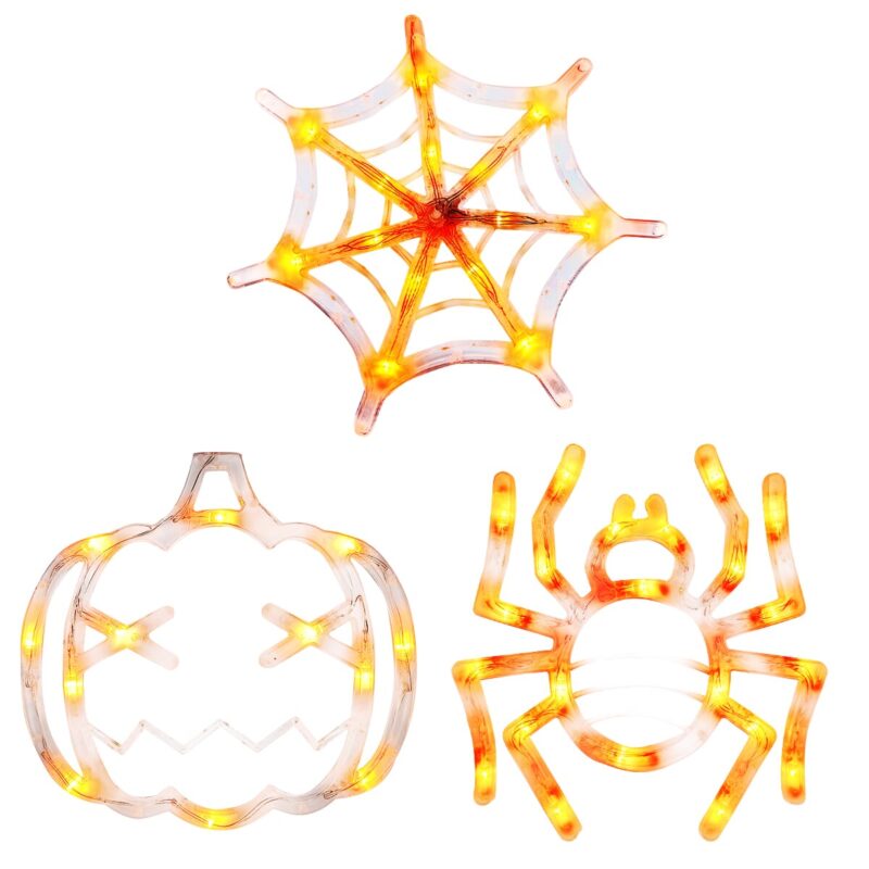 Met de Halloween Verlichting Raam Set krijg je drie iconische figuren: een spinnenweb, een spin en een pompoen. Deze klassieke symbolen van Halloween zorgen voor een authentieke sfeer en maken je raamdecoratie tot een echte blikvanger.