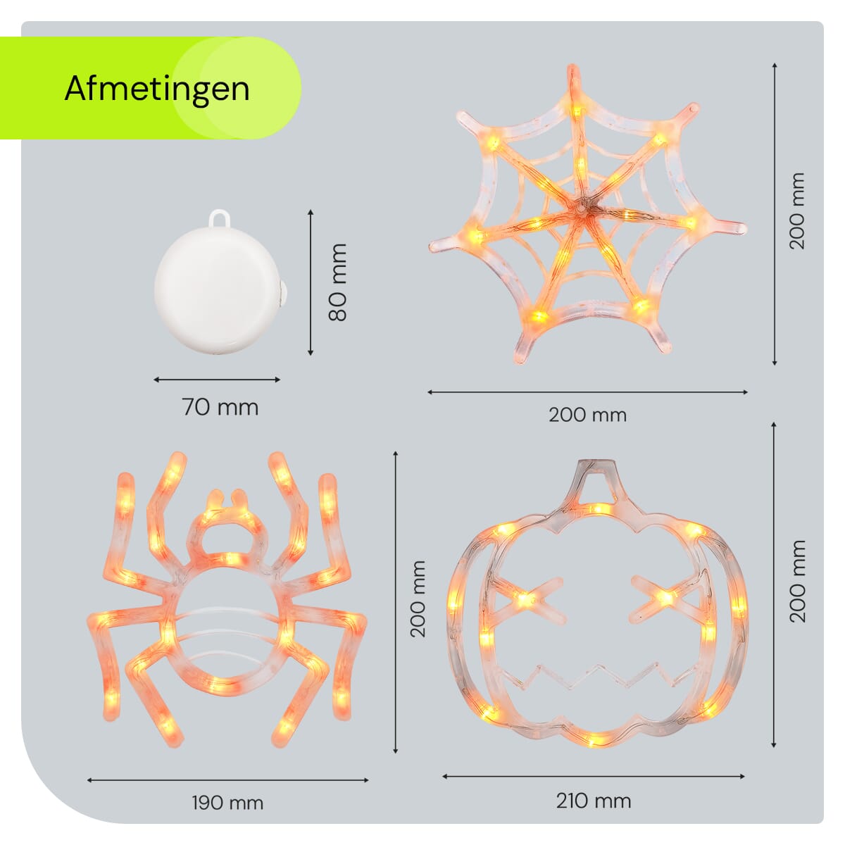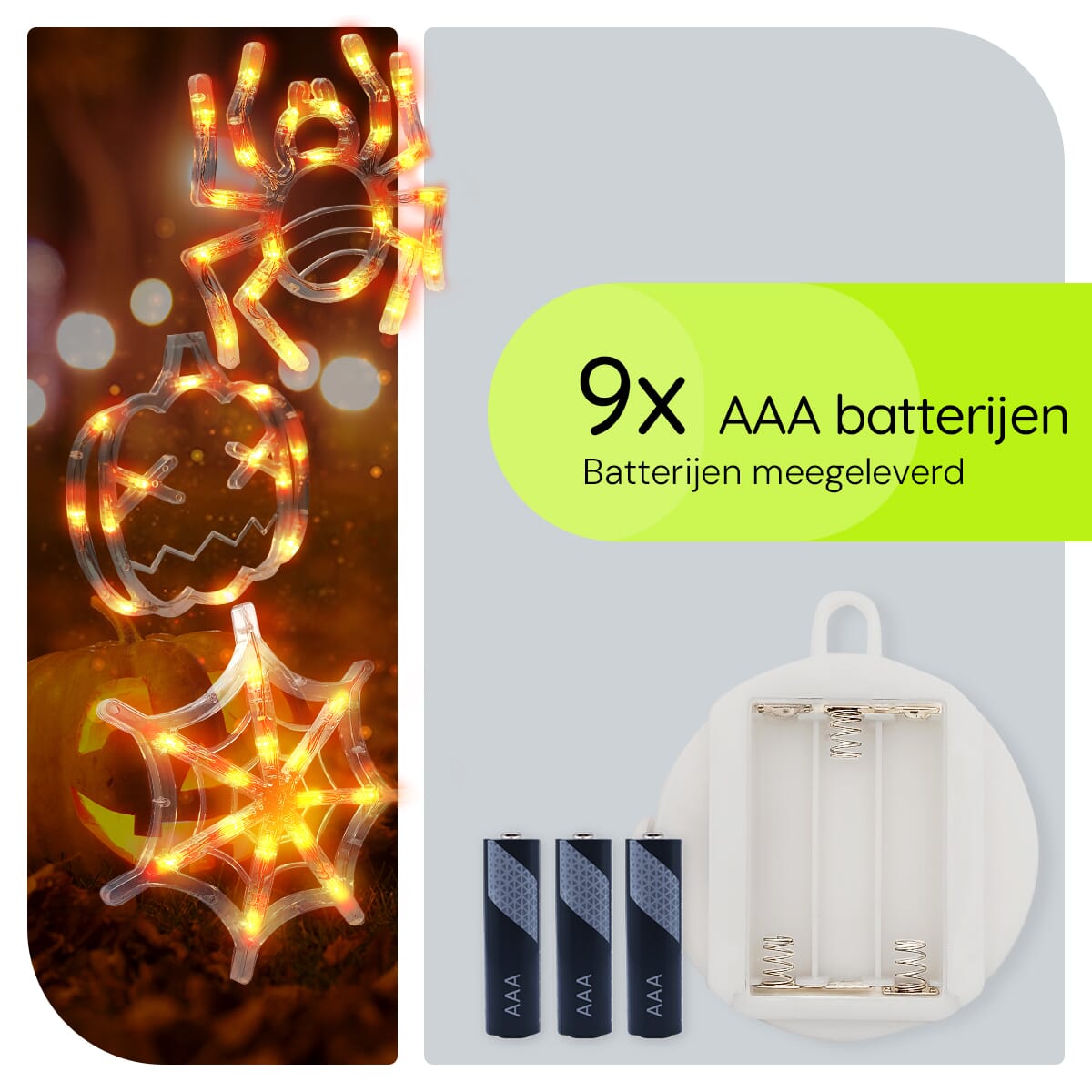 - Magische uitstraling: Creëer een betoverende sfeer dankzij de iconische vormen van spinnenweb, spin en pompoen.