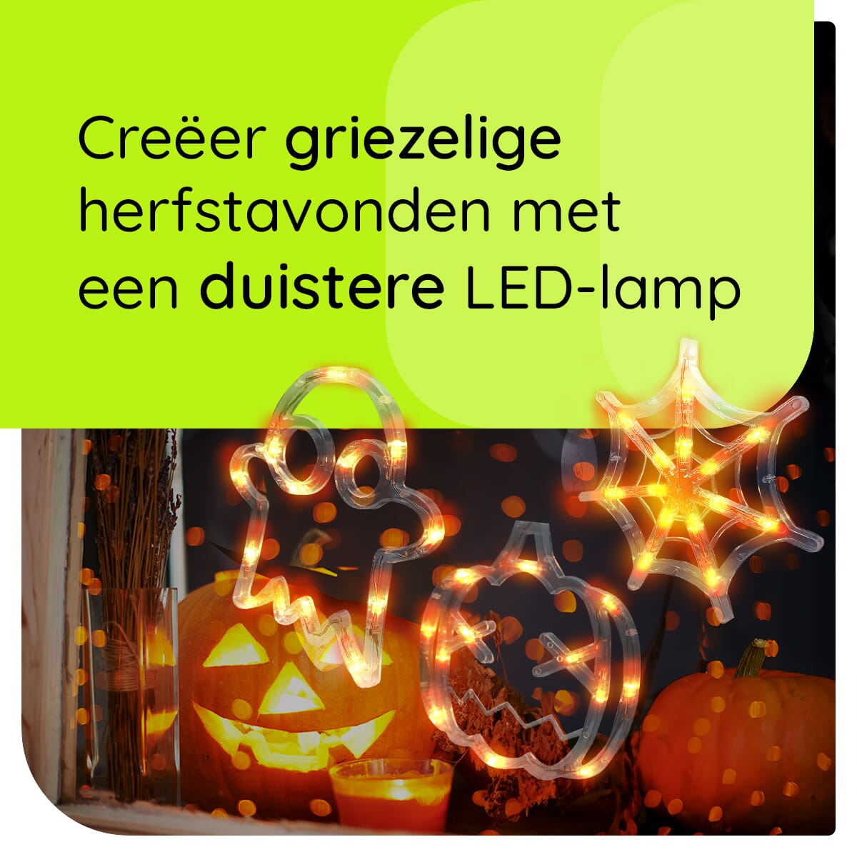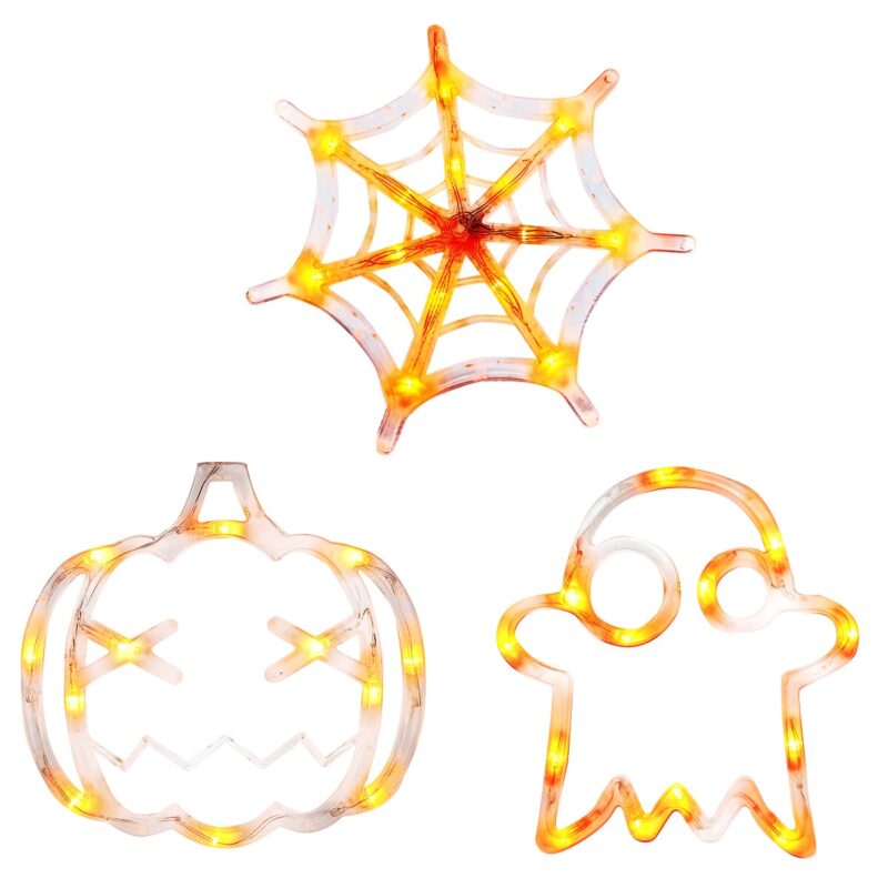 Halloween Verlichting Raam Set: Spinnenweb, Spook en Pompoen