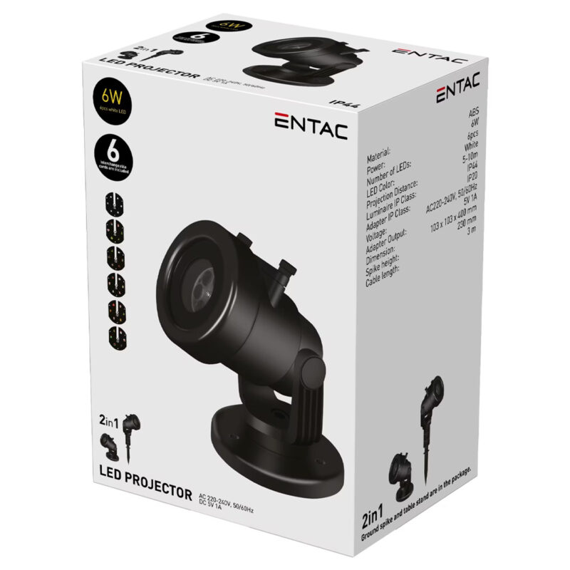 Breng direct de kerstsfeer tot leven met de ENTAC LED Kerst Projector 6W. Deze projector projecteert 6 vaste kerstmotieven op gevels, muren of binnenruimtes. Dankzij de stevige behuizing, IP44-bescherming en een kabellengte van 3 meter is hij eenvoudig te plaatsen en geschikt voor zowel binnen- als buitengebruik.