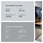 Met een kleurtemperatuur van 2200K biedt deze lamp een extra warme witte gloed, wat zorgt voor een aangename en sfeervolle verlichting in de keuken.
