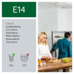 De E14 fitting maakt de installatie van deze lamp eenvoudig en snel. Het is een standaard fitting die in veel huishoudelijke apparaten wordt gebruikt, waardoor vervanging moeiteloos is.