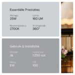 - Kleurtemperatuur: 2700K (Extra Warm Wit)