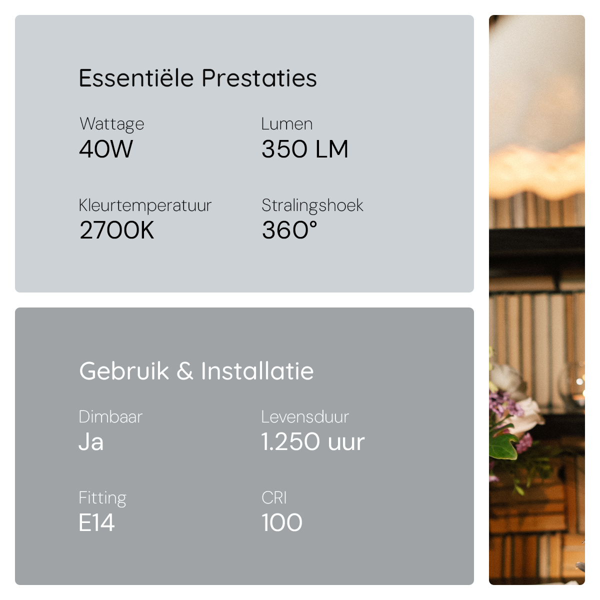 Technik E14 Gloeilamp 40W – 350lm – 2700K – Extra Warm Wit – Kaarslamp B35