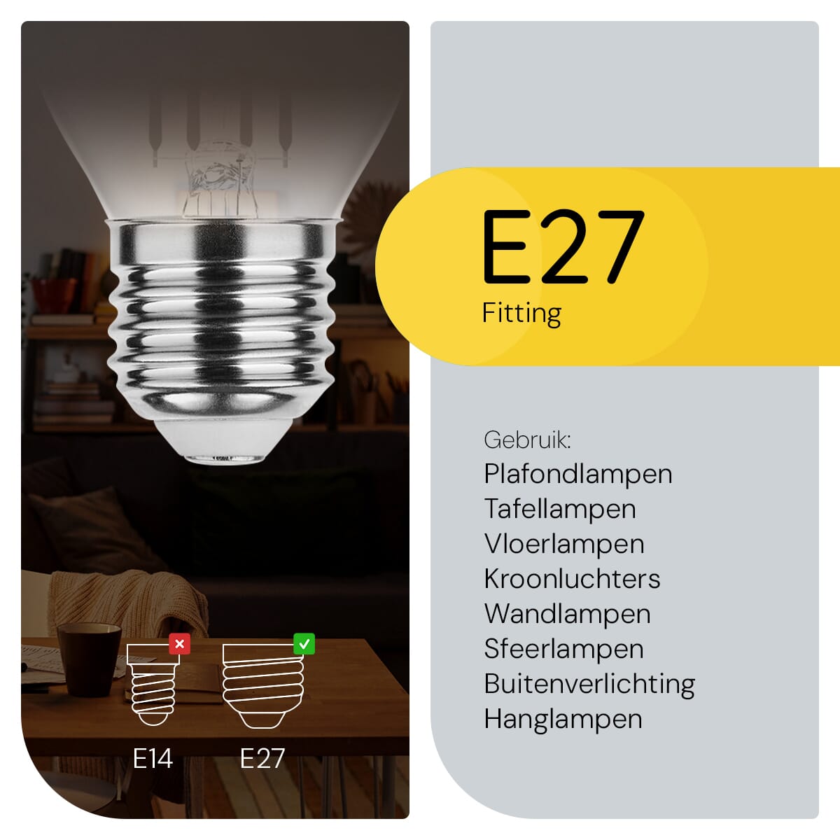 De E27 fitting maakt de installatie van deze gloeilamp eenvoudig en snel. De lamp is compatibel met de meeste standaard armaturen, waardoor je geen extra aanpassingen hoeft te doen.