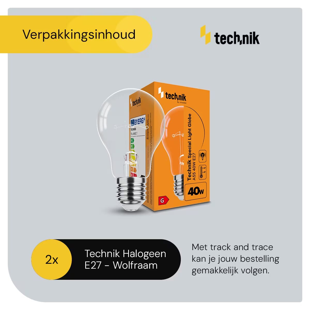 Technik E27 Wolfraam-Gloeilamp Dimbaar 40W – 2700K – Warm Wit – Gloeilamp Globe A55 – 2 stuks