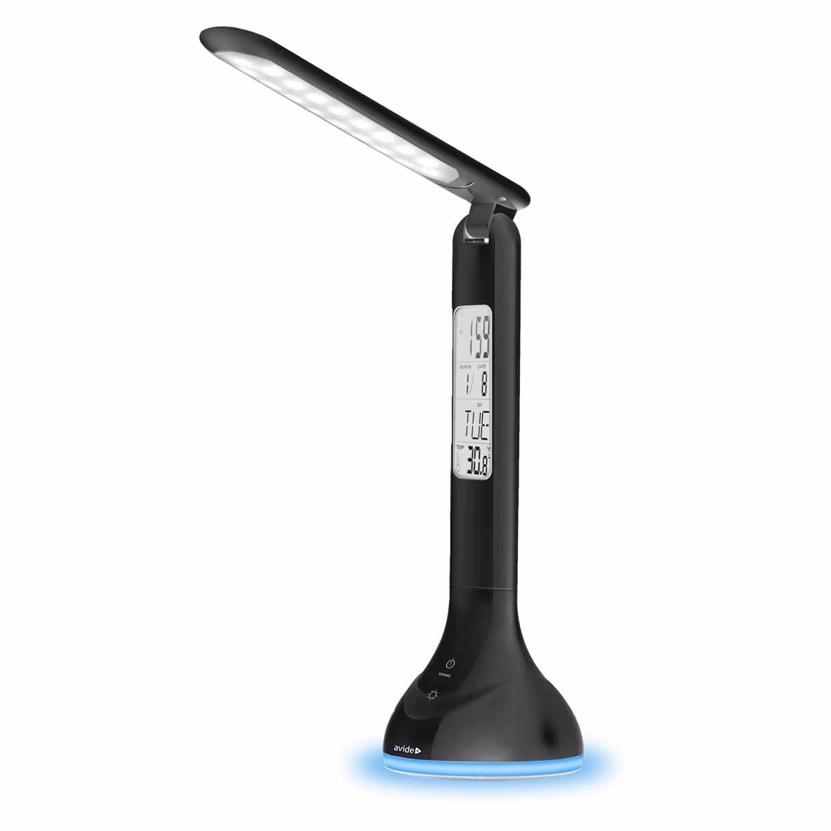 De Avide LED Bureaulamp is meer dan alleen een lichtbron. Met een ingebouwde kalender, alarm, klok en thermometer heb je alle essentiële informatie binnen handbereik. Dit maakt de lamp ideaal voor zowel thuis als op kantoor.