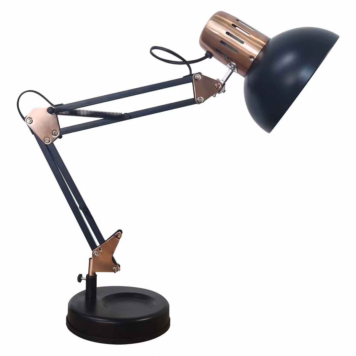 De Avide LED Bureaulamp heeft een opvallend ontwerp dat zowel industrieel als vintage is. De zwarte en koperen afwerking zorgt voor een elegante en tijdloze uitstraling, waardoor deze lamp een stijlvolle toevoeging is aan elke ruimte.
