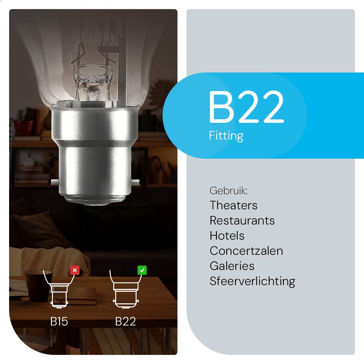 Breng je verlichting naar een hoger niveau met de Modee B22 Halogeen Lamp en geniet van de perfecte balans tussen helderheid en energie-efficiëntie!