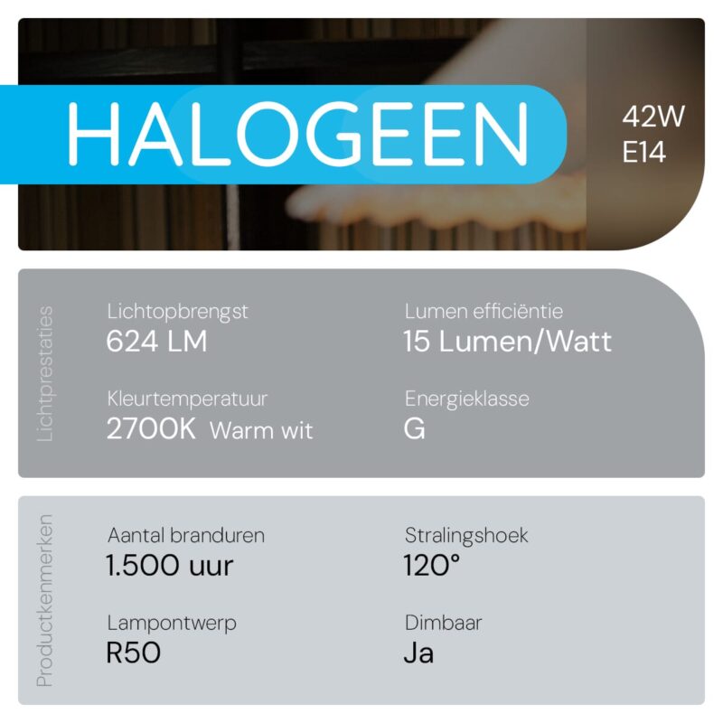 Modee E14 Halogeen Lamp Dimbaar 42W ECO – 624lm – 2700K – Warm Wit – ECO Halogeen Reflectorlamp R50 – 5 stuks