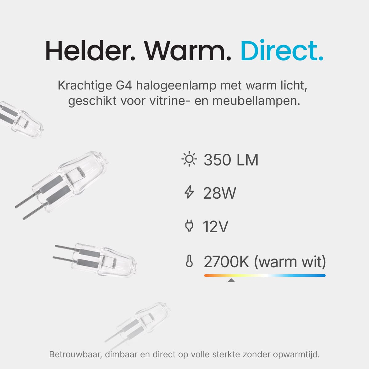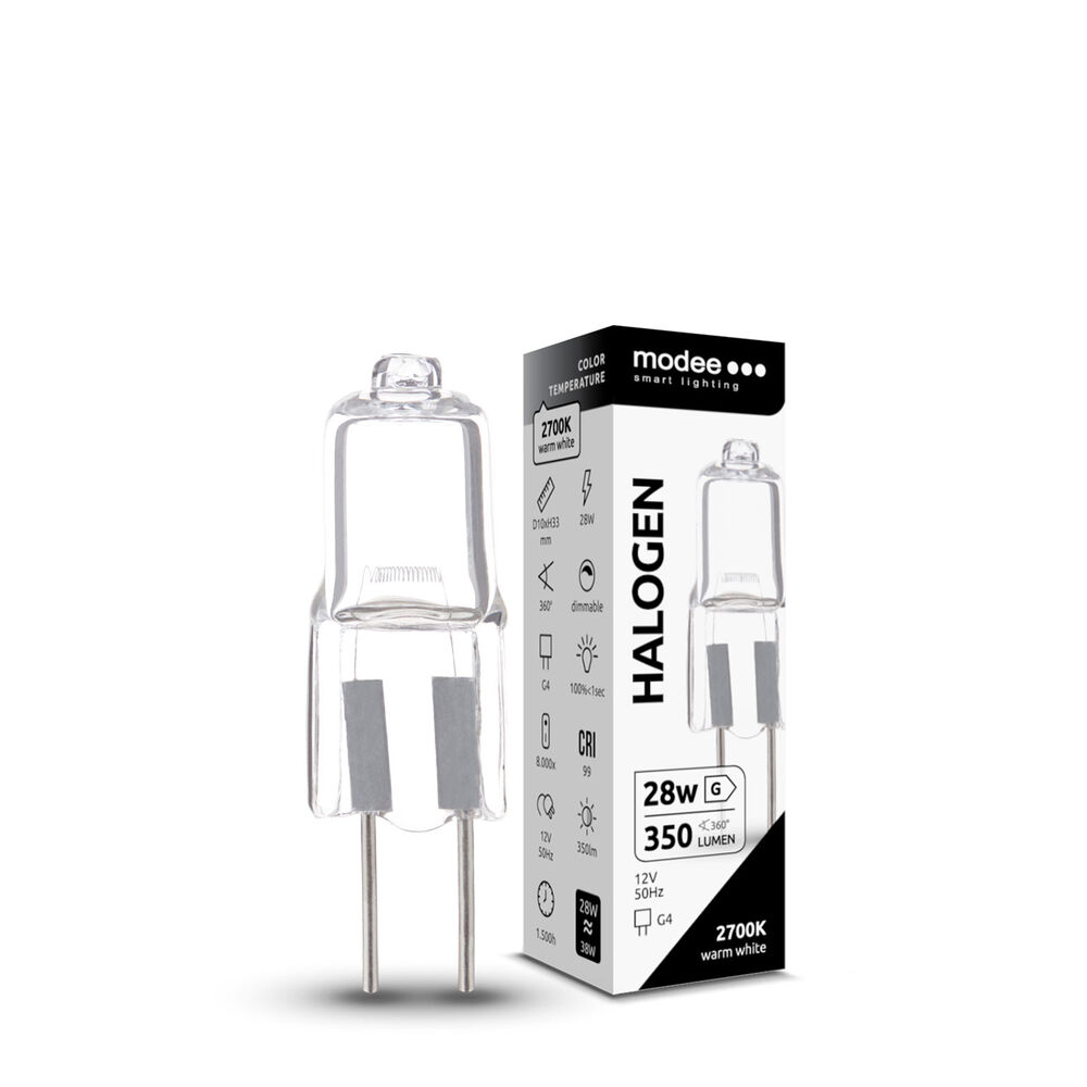 Op zoek naar heldere en warme verlichting voor kleine armaturen? De Modee Halogeen Lamp G4 – 28W 2700K 350lm 12V biedt krachtig en gezellig licht, perfect voor diverse toepassingen zoals accentverlichting en sfeerverlichting.