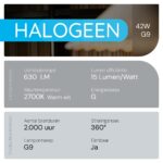 - Duurzaam en krachtig: Met een lichtopbrengst van 630 lumen en een vermogen van 42W biedt deze lamp langdurige prestaties.