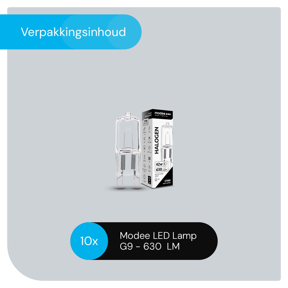 Met een lichtopbrengst van 630 lumen en een vermogen van 42W biedt de Modee Halogeen lamp G9 krachtige en langdurige prestaties. Deze lamp is ontworpen om lang mee te gaan, zodat je minder vaak hoeft te vervangen en kunt genieten van consistente verlichting.