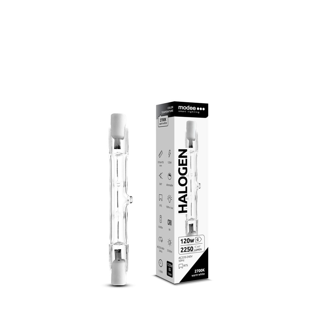 Op zoek naar heldere verlichting voor kleinere armaturen? De Modee Halogeenlamp R7s – 120W 2700K 2250lm 230V biedt krachtig en warm wit licht, ideaal voor gebruik in staande lampen, vloerlampen en andere armaturen.