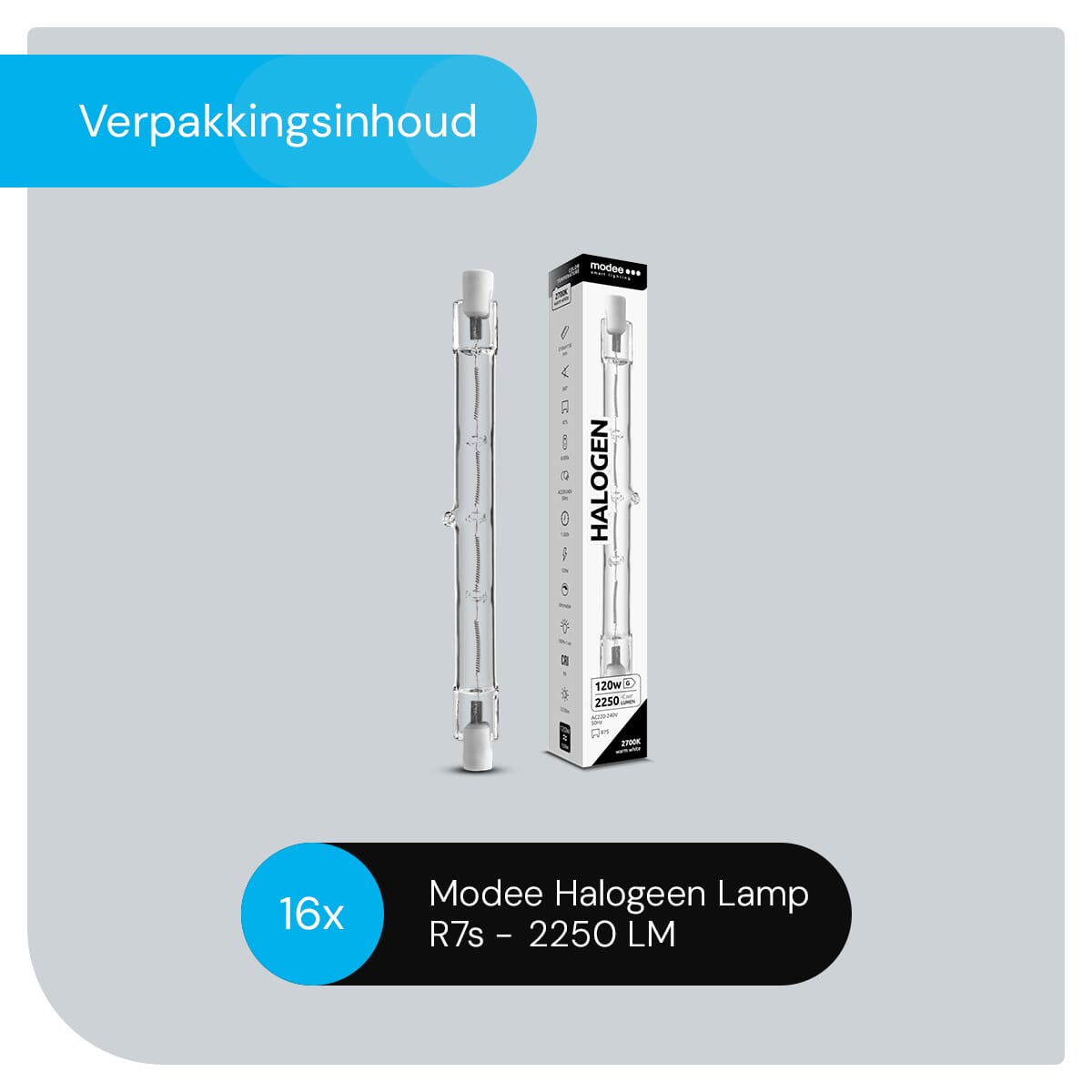 Modee Halogeenlamp R7s Dimbaar – 120W 2700K 2250lm 230V – Staaflamp – 118mm – Warm Wit – 16 stuks