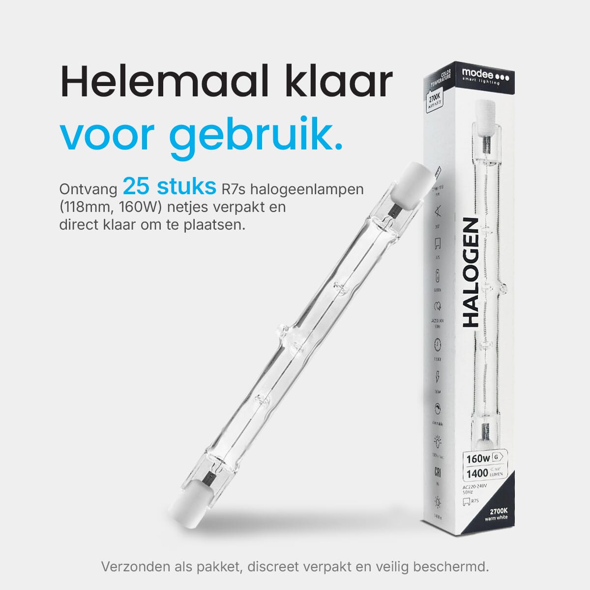 Modee R7s Halogeenlamp 118mm – 160W 1400lm 230V – Staaflamp – Warm Wit Licht – Dimbaar