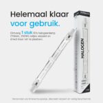 De Modee R7s halogeenlamp is een krachtige staaflamp die ontworpen is voor gebruik in diverse verlichtingsarmaturen. Met een lengte van 118mm en een vermogen van 200W, biedt deze lamp een helderheid van 2200 lumen. De lamp is geschikt voor zowel residentiële als commerciële toepassingen waar een hoge lichtopbrengst vereist is. Het warm witte licht zorgt voor een aangename sfeer in elke ruimte.