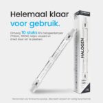 De Modee R7s halogeenlamp werkt door het opwarmen van een wolfraamfilament in een halogeengasomgeving, wat resulteert in helder en consistent licht. De lamp is eenvoudig te installeren in armaturen die geschikt zijn voor R7s lampen.