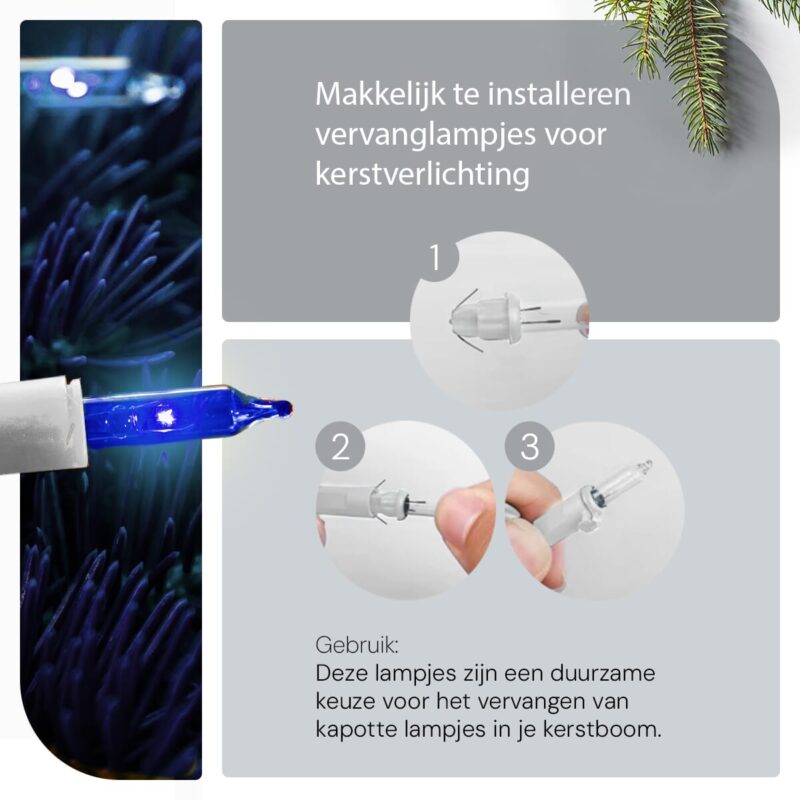 Met deze reserve kerstlampjes hoef je alleen de defecte lampjes uit je kerstboomverlichting te verwijderen en de nieuwe erin te steken. Het is een fluitje van een cent, zelfs als je geen ervaren klusser bent. Zo blijft je kerstboom weer stralen in volle glorie.