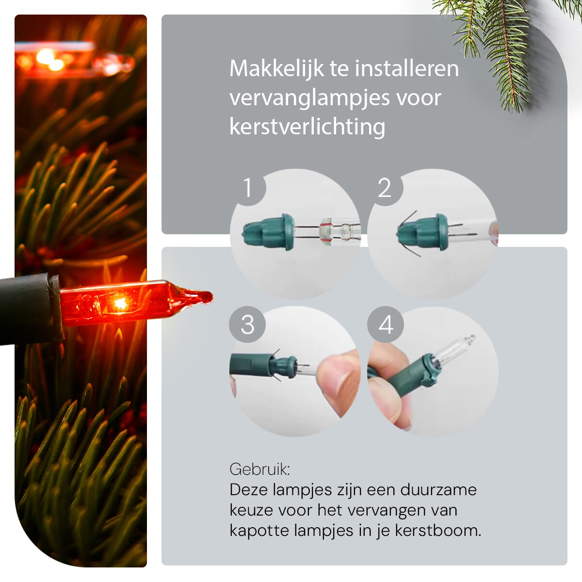 Waarom een hele set kerstlampjes vervangen als slechts een paar lampjes defect zijn? Met deze insteeklampjes verleng je de levensduur van je kerstboomverlichting, wat zowel kostenbesparend als milieuvriendelijk is. Het is een slimme keuze voor een duurzame kerst.