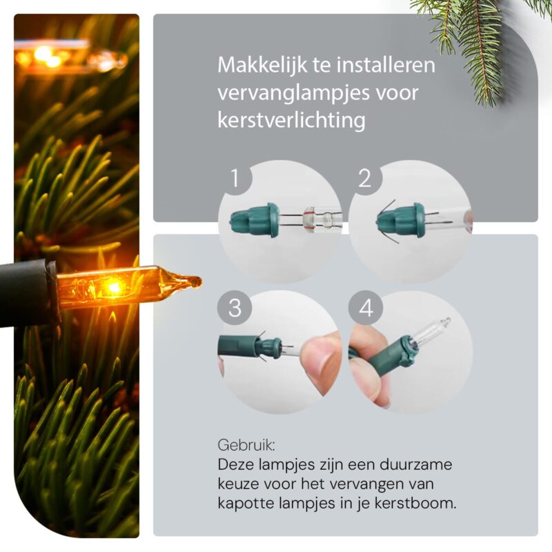 - Geschikt voor kerstboomverlichting: Ideaal voor het vervangen van kapotte lampjes in je kerstboomverlichting, zodat je boom weer prachtig straalt.