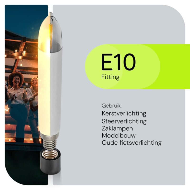 - Past dit lampje in elke E10 fitting? Ja, zolang de spanning binnen het aangegeven bereik ligt.