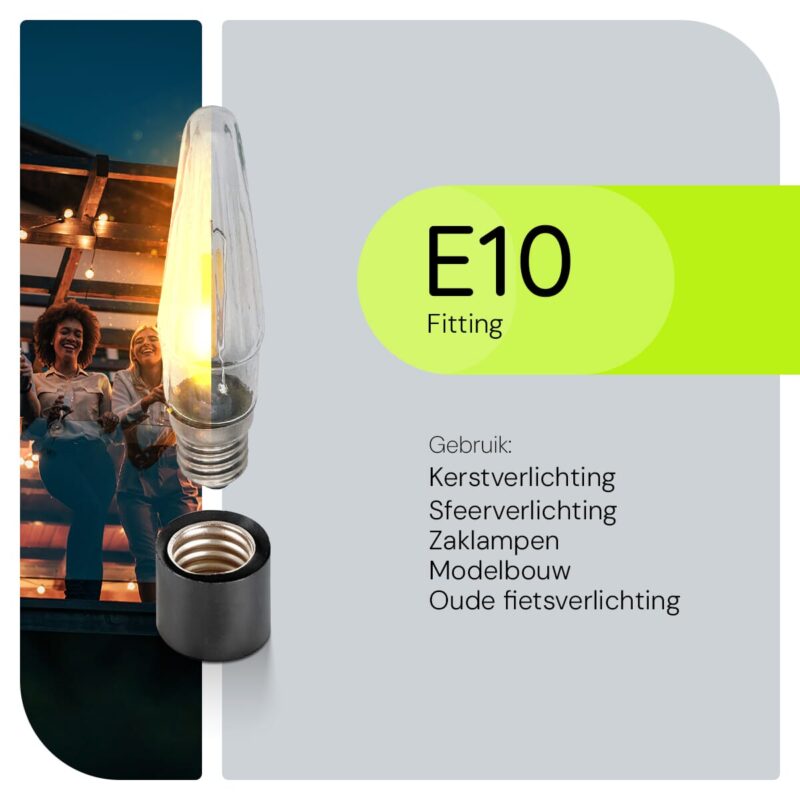 - Welke fitting hebben deze lampjes? Deze lampjes hebben een E10 fitting.