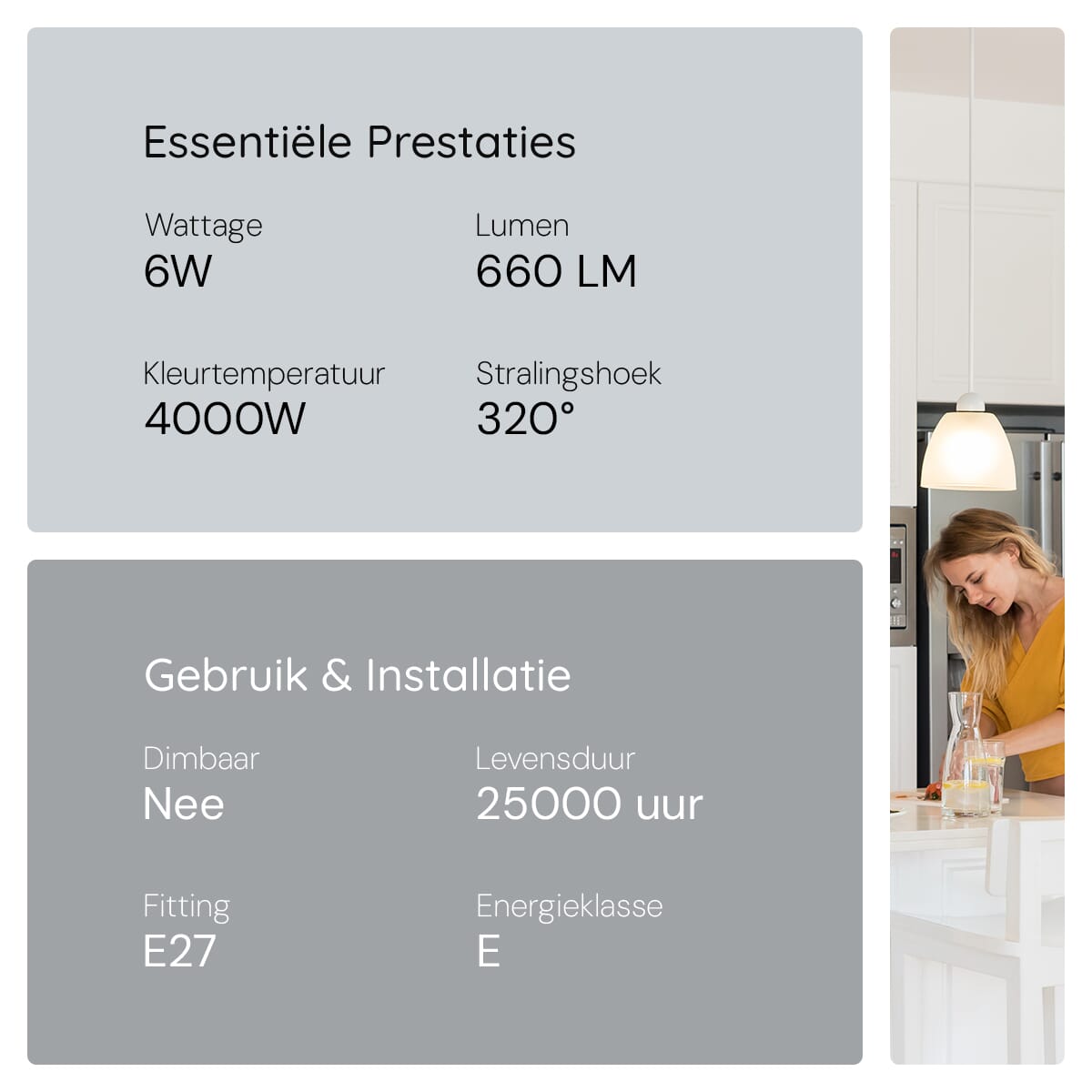 - Kleurtemperatuur: 4000K Neutraal Wit