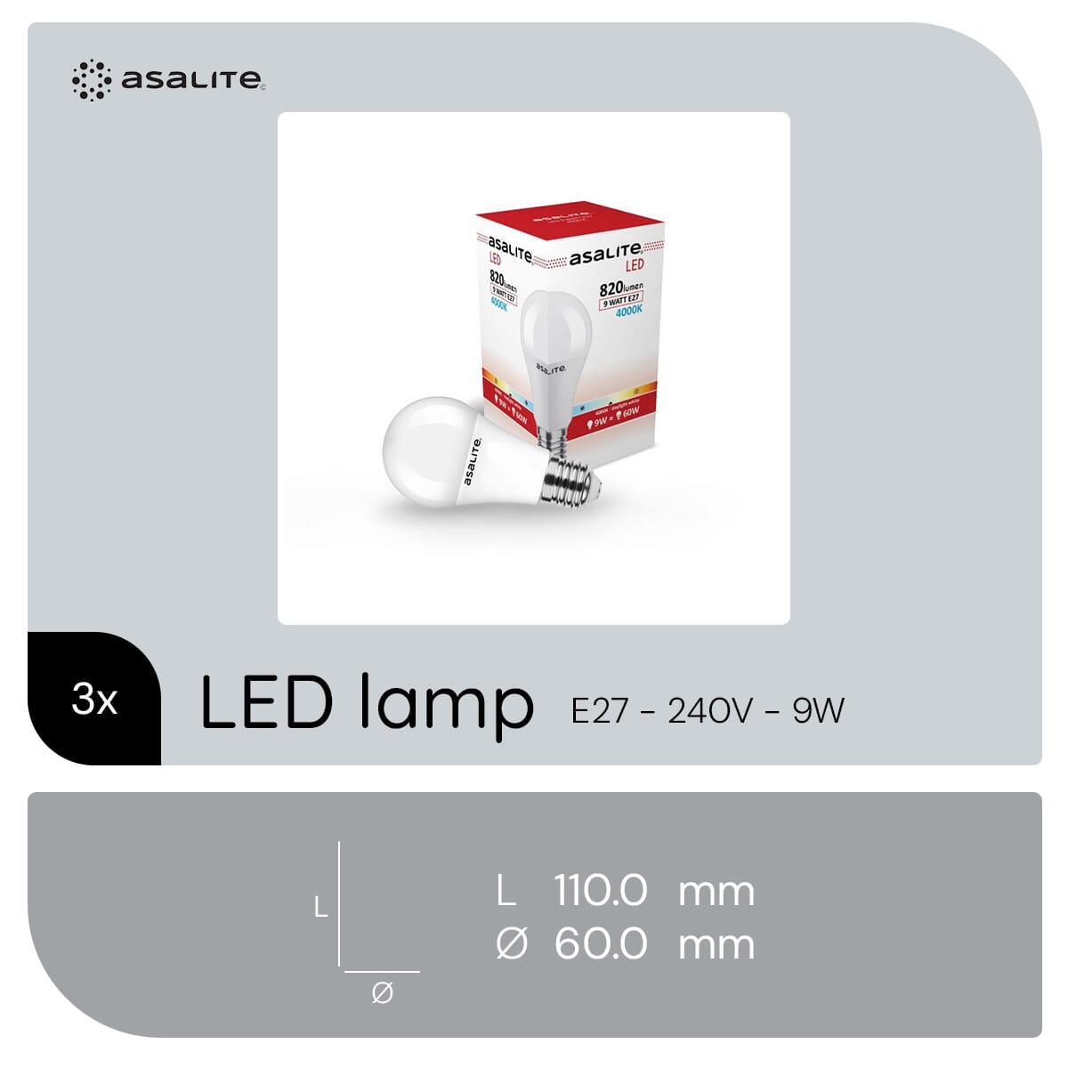 De Asalite LED Lamp A60 met E27 fitting is een energiezuinige lichtbron die geschikt is voor diverse ruimtes zoals de woonkamer, slaapkamer, horeca en kantoor. Deze bolvormige LED gloeilamp biedt een helder neutraal wit licht van 4000K, wat zorgt voor een aangename verlichting zonder verblinding. Met een vermogen van 9W, dat vergelijkbaar is met een traditionele 60W gloeilamp, biedt deze lamp een efficiënte en duurzame verlichtingsoplossing.