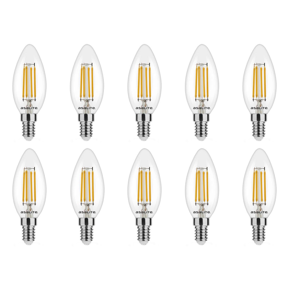 De Asalite LED Lamp C35 met E14 fitting is een energiezuinige lichtbron die geschikt is voor diverse toepassingen zoals kroonluchters, sfeerverlichting en hotelkamers. Deze LED lamp biedt een helder neutraal wit licht van 4000K en heeft een vermogen van 4W, wat vergelijkbaar is met een traditionele 35W gloeilamp. De lamp is niet dimbaar en werkt op een spanning van 220-240V.