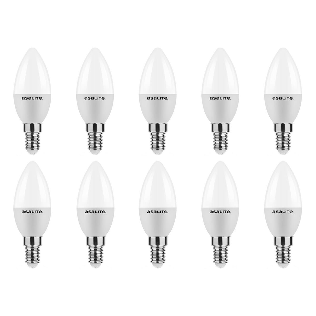 De Asalite LED Lamp C37 met E14 fitting is een energiezuinige lichtbron die geschikt is voor diverse toepassingen zoals kroonluchters, nachtlampen en slaapkamers. Deze kaarslamp LED biedt een warm wit licht van 3000K en heeft een vermogen van 6W, wat vergelijkbaar is met een traditionele 40W gloeilamp. De lamp is niet dimbaar en werkt op een spanning van 220-240V.