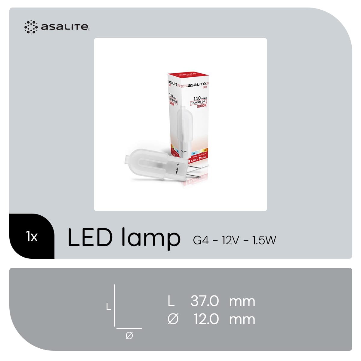 De Asalite LED Lamp G4 is een energiezuinige lichtbron die ideaal is voor gebruik in compacte ruimtes zoals campers, boten, afzuigkappen en kasten. Deze miniatuur LED G4 capsulelamp biedt een warm wit licht van 3000K en is ontworpen om traditionele halogeenlampen te vervangen.