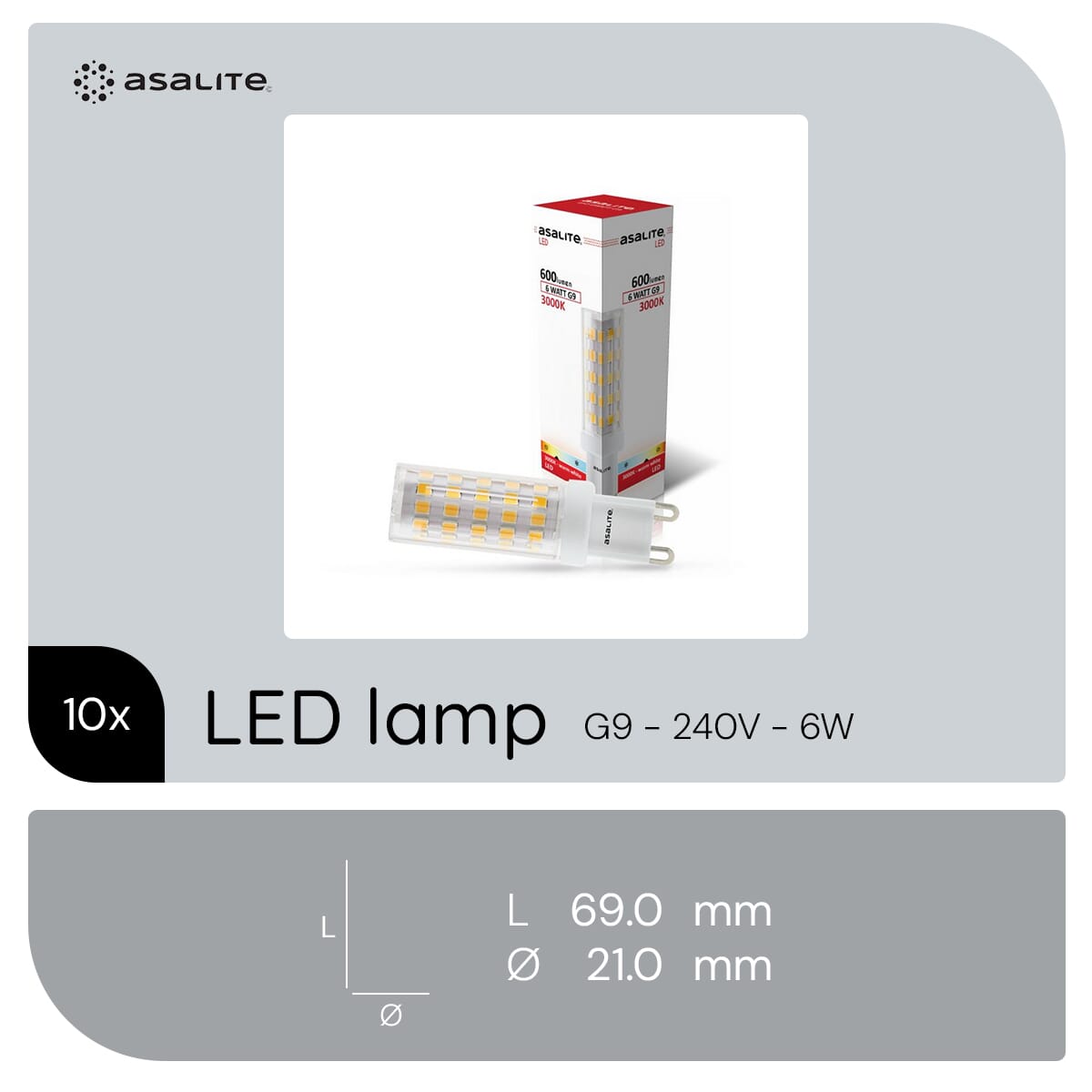 De Asalite LED Lamp G9 biedt een krachtige lichtopbrengst van 600 lumen met een laag energieverbruik van 6W. Dit maakt het een efficiënte keuze voor wie wil besparen op energiekosten zonder in te boeten op helderheid.