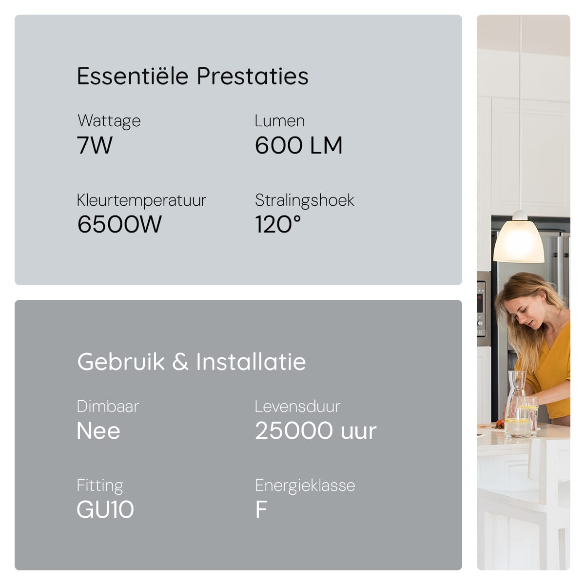 - Kleurtemperatuur: 6500K (koud wit daglicht)