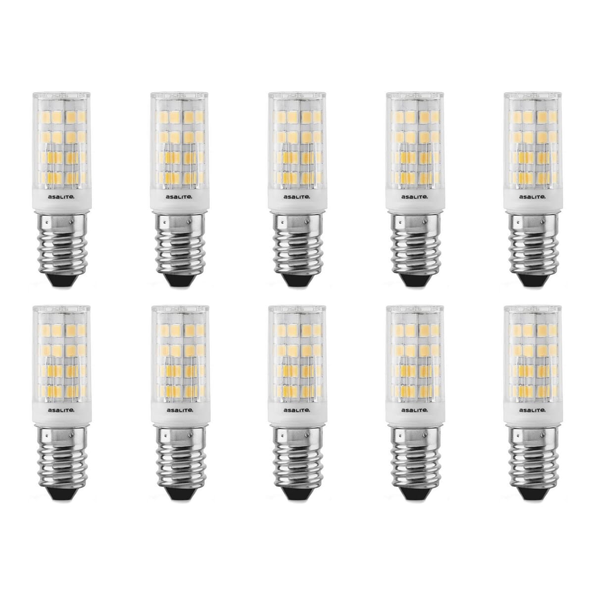 De Asalite LED Lamp Staaf met E14 fitting is een energiezuinige verlichtingsoplossing die geschikt is voor diverse toepassingen zoals nachtlampen, koelkasten en smalle armaturen. Deze LED lamp biedt een warm wit licht van 3000K en heeft een lichtopbrengst van 360 lumen, wat vergelijkbaar is met een traditionele 30W gloeilamp. De lamp is niet dimbaar en werkt op een spanning van 220-240V.