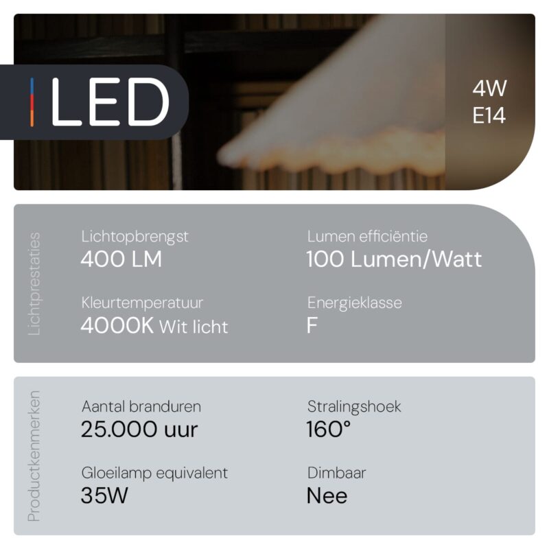 - Langdurige levensduur: Deze LED lampen gaan veel langer mee dan traditionele gloeilampen, wat betekent dat je minder vaak hoeft te vervangen.