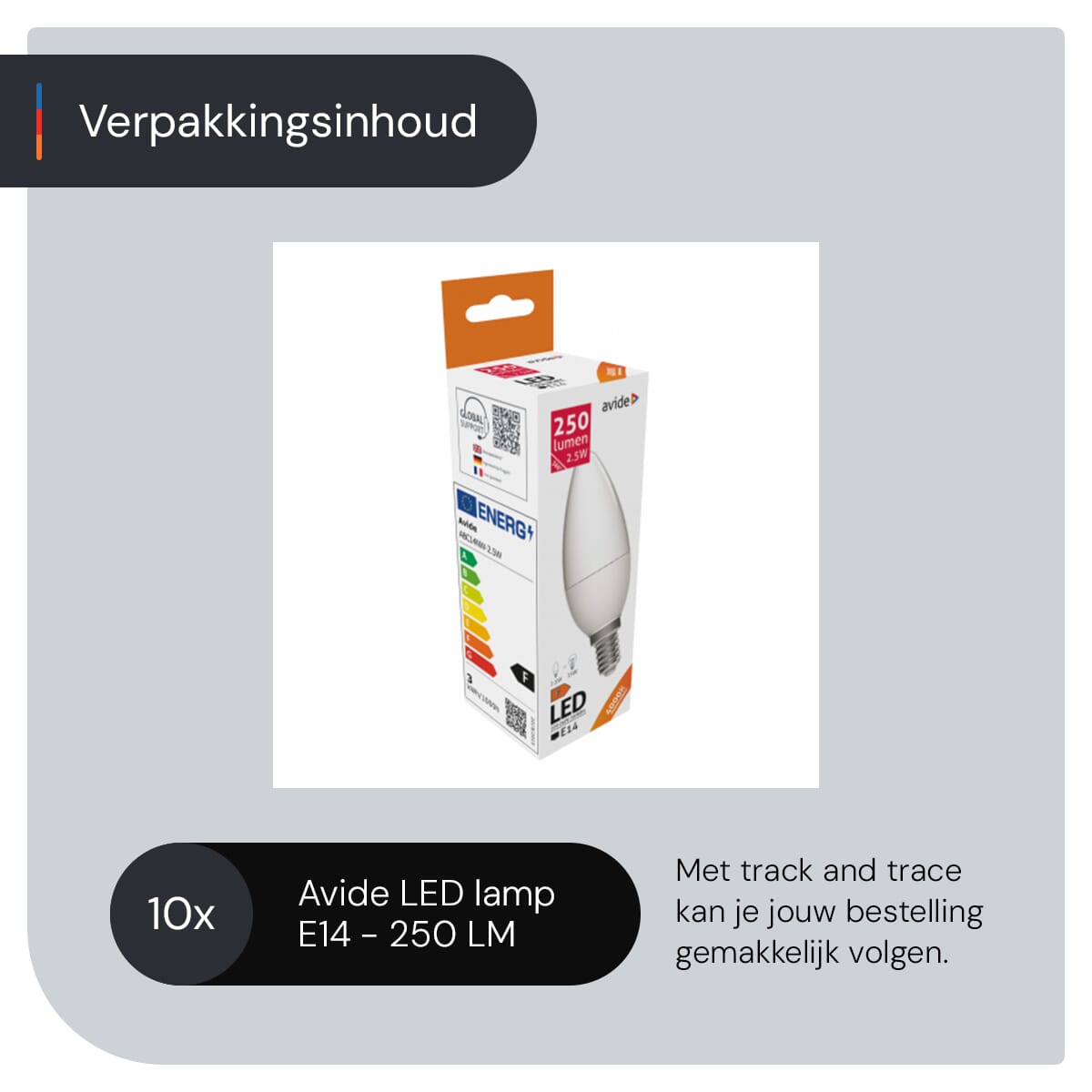 - Hoeveel lampen zitten er in een verpakking? Elke verpakking bevat 10 stuks Avide E14 LED lampen.