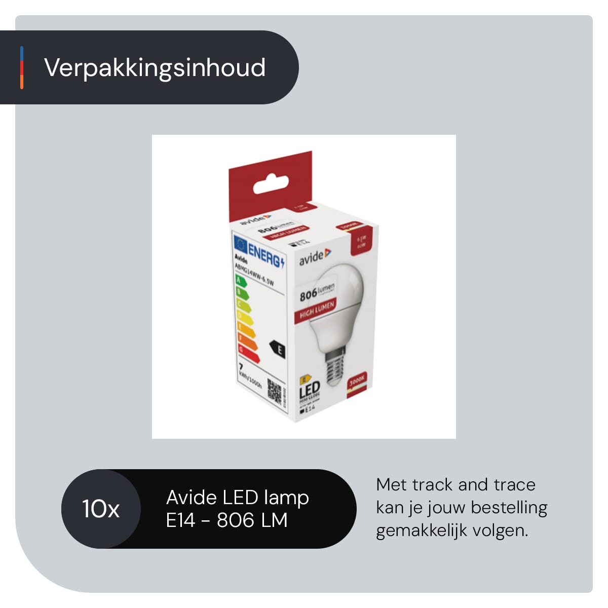 De Avide E14 LED Lamp biedt een indrukwekkende lichtopbrengst van 806 lumen met een minimaal energieverbruik van 6.5W. Dit betekent dat je kunt genieten van helder licht terwijl je je ecologische voetafdruk verkleint.