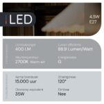 - Energiezuinig: Met slechts 4.5W verbruik vervangt deze lamp een traditionele 35W gloeilamp, wat resulteert in aanzienlijke energiebesparingen.
