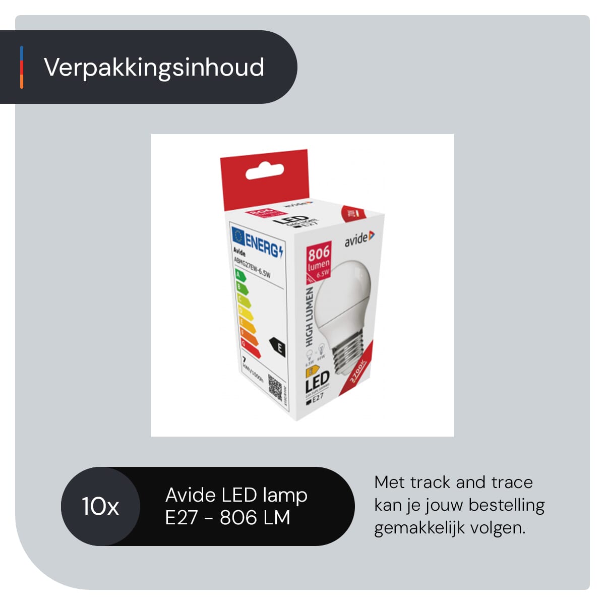 De Avide E27 LED Lamp biedt een indrukwekkende lichtopbrengst van 806 lumen met een minimaal energieverbruik van 6.5W. Dit betekent dat je kunt genieten van helder licht terwijl je je ecologische voetafdruk verkleint.