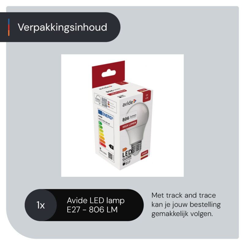 Avide E27 LED Lamp 8W – 806lm – 3000K – Warm Wit – LED Globe A60