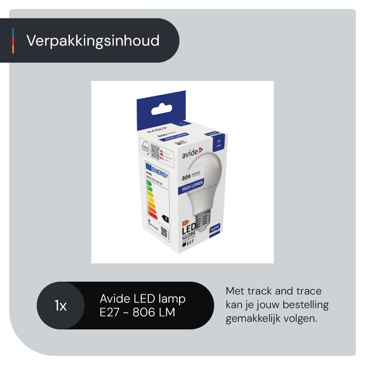 Avide E27 LED Lamp 8W – 806lm – 6400K – Koel Wit – LED Globe A60
