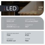 - Energiezuinig: Met slechts 9.5W verbruik bespaar je aanzienlijk op je energiekosten zonder in te boeten op helderheid.